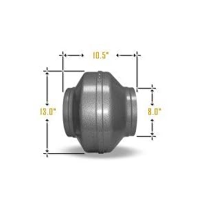 Size = 8", Diameter = 13.0", Length = 10.5", CFM = 747, Amps = 1.60, Watts = 185, RPM = 2550, dBA = 54